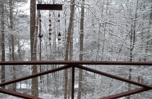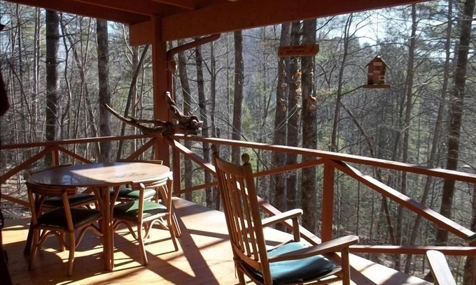 While at home, enjoy the chestnut paneled great room by curling up on the double recliner sofa in front of a crackling fire in the corner stone fireplace. A galley kitchen opens over a counter so if you choose to cook, you can enjoy your family and friends at the same time. The bathroom contains a full size washer and dryer for your convenience. The first bedroom has a king bed and the second has twin beds for an alternative sleeping option. Find peace and tranquility in this little slice of heaven with a visit to Flying Squirrel Lodge.
