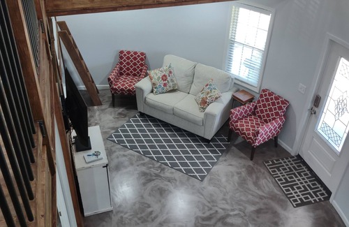 Welcome to this charming farmhouse in Pell City. This serene retreat features 1 bedroom with a cozy queen bed, a well-equipped bathroom, and an inviting living room with a bunk bed for additional guests. Guests can enjoy WiFi, heating, AC, and more during their stay. Experience what Pell City has to offer with a stay at our Silo. Guests are welcome to enjoy our family farm at their leisure or feel free to join us on our daily chores where we care for our goats, sheep, horses, rabbits, quail, ducks, and chickens. The Silo overlooks our 2 acre pond where guests are welcome to fish for bass, brim, and crappie (catch and release only) or take one of our canoes or paddle boats out. In addition to the Silo, we have 3 other short term rental places on our farm that offer their own unique charm and privacy. This is a wonderful place for a romantic couples retreat or a small family getaway.