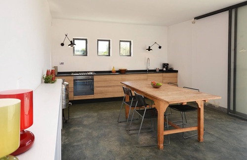 Ancient, renovated masseria (fortified farm) with a private pool by the sea (that is 2,3 km away from San Gregorio - Santa Maria di Leuca), immersed in 4000 sq.mt. property with olive groves and Mediterranean vegetation and is constituted by a main house (old restored farmhouse) and an annex (new house) placed just 30 m from the main house. The setting gives a peculiar rural atmosphere, enriched by few but accurately selected pieces of furniture, which render the interiors charming, comfortable yet simple. The restoration works were oriented to preserve and enhance at best the original architectonic characteristics, such as the star-vaulted and barrel-vaulted ceilings, so dictating the use of the space; the indeed, one of the two bedrooms of the main house has been kept smaller (around 10 sq.mt.) for this reason.