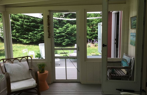 A charming 2-bedroom cottage with an outdoor shower, central air, amazing light and a bike ride away to the bay beach. Beautiful hydrangeas speckle the property providing a serene getaway throughout the summer season.