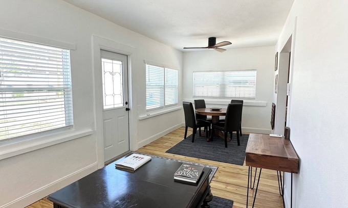 Quaint cottage located on a quiet street in the centre of Sebring, soon to be featured on HGTVs hometown Takeover!! The house is within a short walking distance to downtown and many local shops and restaurants and a newly opened Irish Pub. For race fans we are only 7 minutes from Sebring Racetrack. The cottage has one queen bed, full size bunk beds and a queen sleeper sofa.