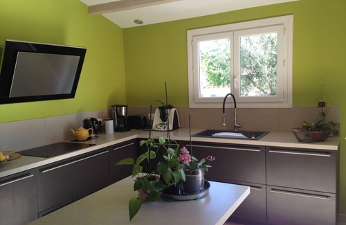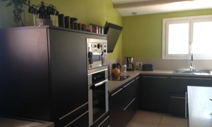 Modern and spacious villa in Languedoc style, located 10 minutes from the beaches in a very quiet area and in a quiet dead end street, the villa includes a kitchen equipped with an oven, dishwasher, microwave and fridge and a large work plan, a dining-living room, 3 large bedrooms with a double bed, possibility of having a baby cot and a stroller, 2 bathrooms, separate toilet, exterior planted with swimming pool, deckchair, garden table and plancha, small vegetable garden.
