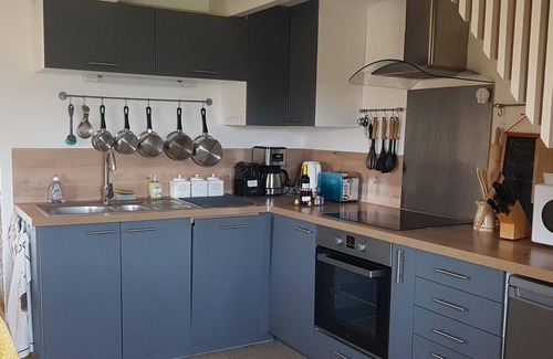 Detached Périgord Gîte de France house of approximately 42 m² located below the owners' house. On the ground floor, you'll enjoy a bathroom (walk-in shower, washing machine, towels provided, hairdryer). Separate toilet. Go down two steps to access the living room with a kitchenette (dishwasher, oven/induction hob, refrigerator, and microwave), a dining room, a lounge area with two armchairs, and a TV. Wi-Fi is available. On the first floor, you'll occupy a bedroom with two 80x200 cm beds that can be pushed together to create a 160x200 cm bed or separated according to your needs (bed linen provided). In fine weather, an outdoor jacuzzi is available for guaranteed relaxation (off-season: on request depending on the weather).