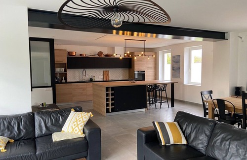 To perfect your stay, it is possible, at an additional cost, to benefit from massages and yoga classes in the house. A riding school in the village also offers many options for adults and children's lessons. On the ground floor: living room of 55 m² with lounge, dining room and fully equipped open kitchen, wardrobe and a separate toilet with washbasin.
