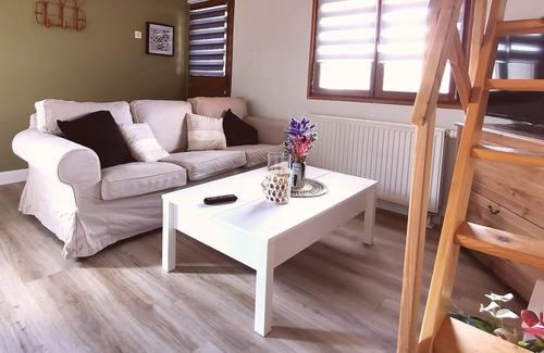 Decor renovated and warm with beamed ceiling and relaxing colors. Storage (wardrobe, chest of drawers). Mezzanine bed (low ceiling).