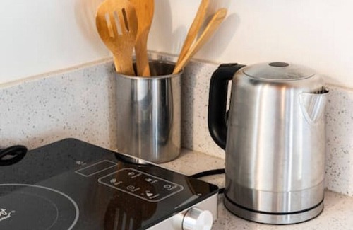 Our kitchen features an over-the-range microwave oven, electric stove, mini-refrigerator, dishwasher, water heater, toaster, pots, pans, basic wooden cooking utensils and dining essentials. Coffee, creamer, sugar, oil, salt and pepper are also provided in the kitchen. Meanwhile, the dining table can cater up to 2 people.