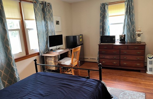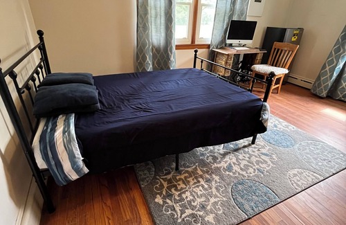 Life is Better at the Lake and Farm! Unwind in Ellington in this charming guest suite studio with private entry and bath in our renovated home with Crystal Lake access and farms along our picturesque country road. This cozy retreat features a large studio perfect for a relaxing getaway. With a dedicated Wifi workspace you can stay connected. There are also a hair dryer, bathroom towels and linens provided so you can pack light and enjoy a hassle-free stay. If you'd like, bring your kayak to our clear mountain lake, or your bikes for rides to pick your own orchards at the corner, dairy and horse farms, and view waterfalls and a reservoir along the rail trails. If you'd like excitement, head to Six Flags, UCONN events, or the Bushnell Performing Arts, too. You're sure to make fantastic memories with a stay at our place!