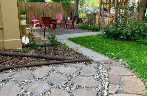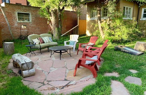 The green, canopied front patio provides a friendly chill-out space to enjoy Denver's blue skies. In summer, we welcome guests to visit the back yard to pick tart apples from one of our apple trees.