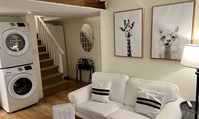 Fully renovated, warm and cozy space. It has been thoughtfully updated and tastefully decorated by professionals to offer warm environment allowing our guests to feel on vacation yet still as if they are completely at home. It can accommodate 2 people. As owners, we are passionate about our home and will always remain closely engaged with the upkeep of our property and the satisfaction of our guests. The space has a well-designed bright and cheery feel with an electric fireplace, wet bar with Keurig coffee maker, and closet. The unit also includes a full-size washer/dryer.