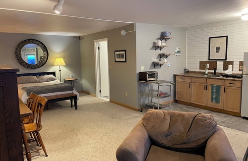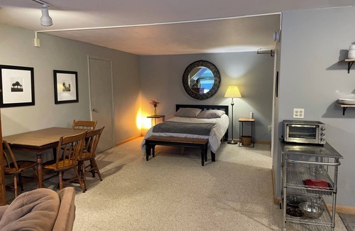 Discover this adorable studio gem in South Burlington. Our studio has a prime location! This fantastic space is equipped with all the essentials for a comfortable stay, including WiFi, heating, an iron, and a hair dryer. Step into this enchanting retreat and feel right at home. Fall in love with South Burlington and enjoy the magic it has to offer. There are walking trails nearby, as well as pickleball courts. In our kitchenette we have a hot plate with two burners. We also have a toaster oven, and coffee maker for your convenience. * This is a walkout basement studio. Due to gravity and drainage in the bathroom, the shower has quite a tall step in and out. Please use caution