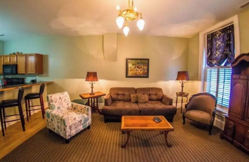 This spacious suite has a King-size TempurPedic bed, custom made bedding and window treatments. A full size kitchen, living room and bath with walk in shower.