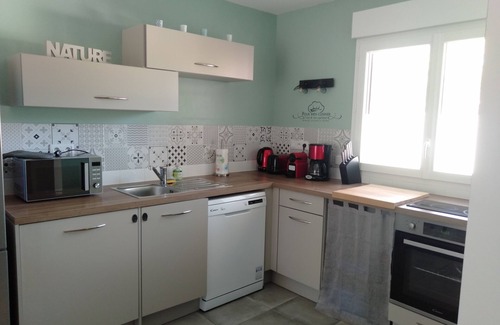 It consists of a bedroom with a 160 bed. (possibility of baby bed and high chair), a living room with a sofa bed 140, a kitchen with dishwasher and washing machine.