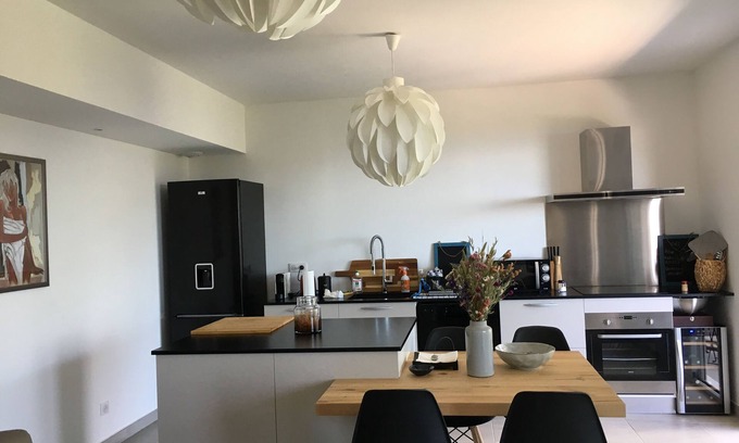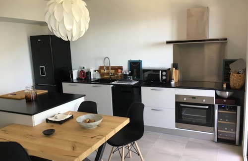 The rental of this apartment has the vocation to be a true hotel service. Complete kit provided with sheets, towels, bath mats, dishcloths washed in professional laundry, at your request during the stay. Many facilities and quality: Oven, induction hob, dishwasher, washing machine, small wine cellar (possibility to provide you with a small wine list), Smart TV 104cm, espresso machine, microwave oven toaster, kettle, various kitchen utensils.