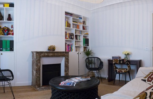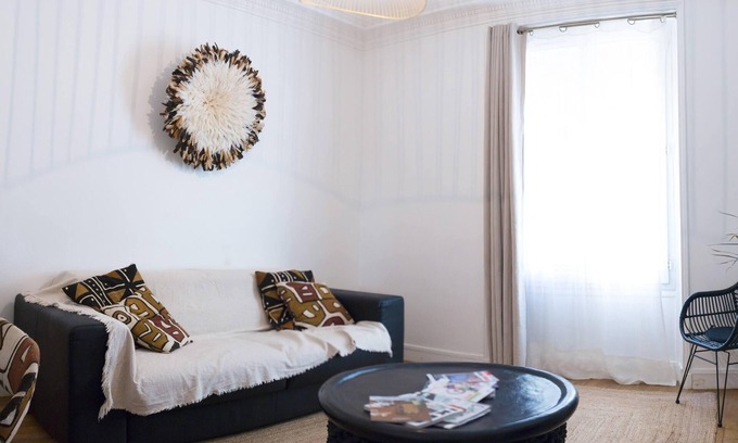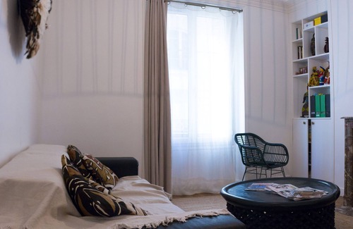 Very elegant and modern, the apartment has been tastefully decorated in the "Afro-chic" style. It will make you travel from Africa to the Caribbean with masks, statuettes, juju-hats, Cameroonian coffee tables and Berber wool carpets.
