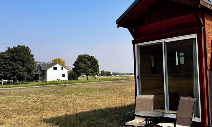 Your Montana adventure begins at this cozy tiny home. Nestled on our farm, tucked beside our berm home, this beautiful space offers a full lofted bed (ladder access), AC, and heating when needed. For the folks who like sustainable living, it offers a composting toilet and soon to be grey water gardens. Pet and family friendly, tents welcome as well. If you have a dog there are plenty of walking trails through forest service land up the mountain or easy river access/trails a few minutes down the road. With a patio and cozy chairs enjoy the sunsets and beautiful mornings. Via the interstate it's an easy 20 minute commute to Missoula.