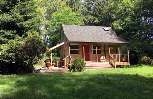 Recently updated and fully furnished for minimum 4 night stay! Enjoy this very private, charming and fully furnished 1-bedroom (loft), 1-bath cabin, located in Greenbank, Central Whidbey area. This charming little cabin-in-the-woods is located on 5 acres, surrounded by nearly 60 acres of sparsely inhabited acreage. Complete with original artwork, spiral staircase, front porch, side patio with propane barbecue and sitting area, loft bedroom and kitchenette. Activities nearby include hiking, fishing, boating and sight-seeing in the historic towns of Langley and Coupeville.