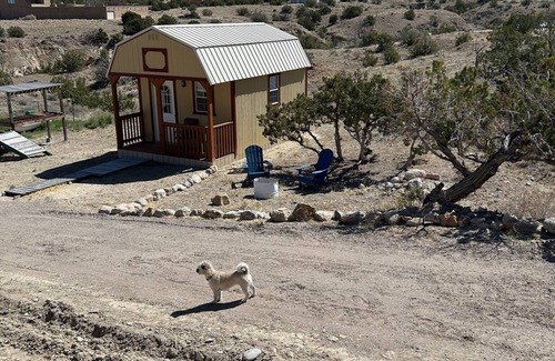 This perfect high desert casita is a tiny home that comes with everything you need. Great views, plenty of privacy. Loft bedroom with a main floor futon. Wifi, linens, and towels included. The unit has a two-burner hot plate, egg cooker, microwave, and refrigerator. Very quiet location. The property is ideally situated between Santa Fe and Albuquerque. You are 56 minutes from the Plaza in Santa Fe and 48 minutes from Ski Santa Fe. The property is 34 minutes from Albuquerque Old Town and 1 hour from the Sandia Peak Ski Area.