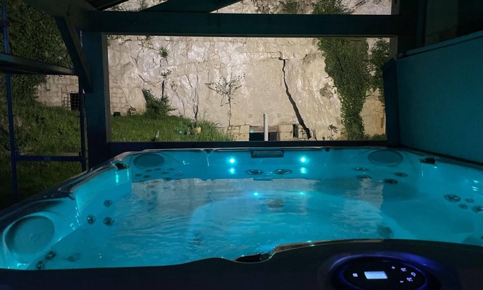 All-inclusive rates (except tourist tax), and a 5-seater Jacuzzi under cover, for this superb gîte on 3 half-floors. Garden level (go down 7 steps): 1 bedroom (1 160 bed, shower room with toilet). Ground floor: living room equipped kitchen (3-burner induction hob, Senséo pod coffee maker, wine cellar), toilet, laundry room (washing machine, dryer). ½ floor: living room (fireplace, connected TV, bluetooth sound bar). Floor (+1 ½): 1 bedroom (2 90 beds, 1 80 bed, shower room with toilet). Floor (+1): 1 bedroom (2 90 beds, shower room), 1 bedroom (2 90 beds), 1 bedroom (1 160 bed), shower room, separate toilet. WIFI connection. Electric heating (included in the rates). Private garden of 500 m² not enclosed not overlooked (wooden barbecue and plancha). Ping-pong and outdoor games. Electric charging point on site. Non-smoking accommodation. If you like peace and quiet, birdsong, pretty views of the surrounding countryside and a prime location to discover the Loire Valley, then the Jaminière gîte is for you! The superb SPA will also delight you with fabulous moments of well-being, facing the hillside which gives this place a uniqueness that is beyond compare. Enjoying the vast living room, the terraces, the lounge and its fireplace but also the 4 bathrooms for optimum comfort is a treat, for a weekend, a week or more. You will be a few minutes from Fontevraud, the largest and among the most beautiful abbeys in Europe, Candes-St-Martin and Montsoreau (among the Most Beautiful Villages in France), Saumur and Chinon, jewels of our Region. The many vineyards, the bike rides (the Loire à Vélo nearby) or canoe rides will punctuate your stay in Touraine. Here, it is happiness in the countryside.