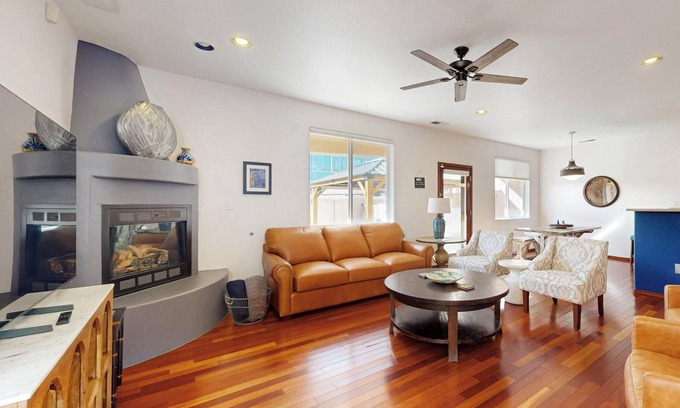 Located 1 mile from Old Town Albuquerque, this townhome is a comfortable place to relax and unwind while traveling. Just blocks away from the Albuquerque Bio Parks, and a couple of miles from downtown, This home is perfect for traveling families and groups. Enjoy tall ceilings, offering tons of natural light, with 3 bedrooms including a king, queen, and 2 twin beds upstairs. Guests will find comfort and space to unwind. The outside patio has a sitting area with a gas firepit. The property boasts of fine furnishings, quality linens, and a 2 car garage. Relax and enjoy everything Albuquerque and our charming townhome has to offer.