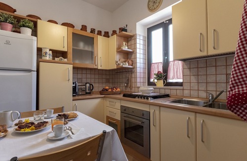 Trulli are composed by a living room with fireplace, one large matrimonial bedroom, one bedroom with single beds, joinable if you prefer, and one fully equipped bathroom with shower and washing machine. Then we have a fully equipped kitchen with cooker, oven, fridge with freezer.