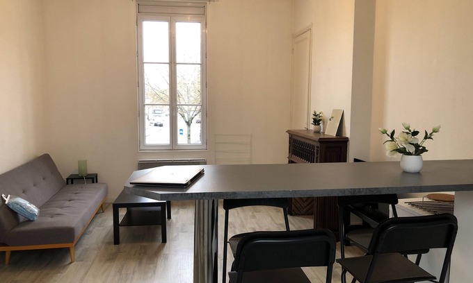 Charming type 3 apartment, left bank is located in Centre Ville Rive Gauche. Charming type 3 apartment, left bank provides accommodation, featuring Internet, Kitchen, Laundry, among other amenities. This Apartment features Internet, Kitchen, Laundry, to make your stay a comfortable one.