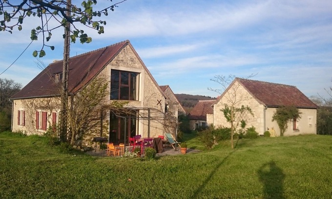 1.5 hours from Paris by TGV, 3 hours by car, in the heart of Touraine, a hamlet with large swimming pool (20 m long), open from mid June to mid September, and houses for a great weekend or a week with family or friends, preserving everyone's freedom. You can even cook certain meals separately thanks to the three fully equipped kitchens in the main house, the Vernat house and the Maison de l'Ecrivain house. Children don't wake singles, everyone is happy!