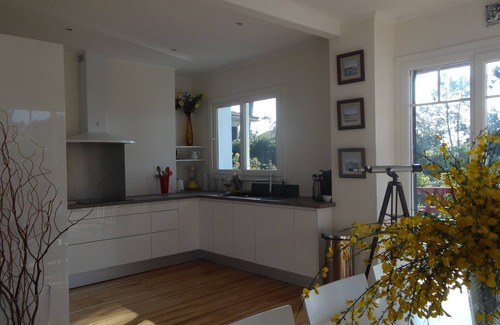 Close to the ocean you can get there on foot or by bike numerous cycle paths. The house is located in a quiet location. House that can accommodate 12 or more people on two independent levels 4 large bedrooms with double beds, 1 bedroom with 2 bunk beds and 1 double loft bed. 2 shower rooms, 2 toilets, 1 kitchen + 1 outdoor kitchen, 2 very large terraces, from where you can enjoy the view of the basin.