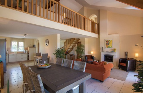 The villa has a heated swimming pool with a roofed terrace that has garden furniture and barbecue. There is a carport available the floor of the home is heated. You can enjoy your favorite drinks in the private garden. There is a boules court and high chair available (on request).