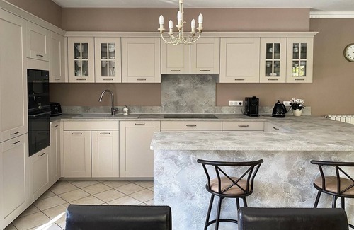 Large, beautiful three storey villa is fully equipped with air-conditioning. The living room is comfortably furnished with a spacious sitting area and flat screen TV. Adjacent to the kitchen (fridge with freezer, microwave and dishwasher) is a large terrace with an extra large dining table and summer/outdoor kitchen. A spacious dining room located on the first floor has a large dining table (up to 12 persons) and a piano.