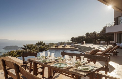 Best-rates for the Achlada villa starts from $2,364 per night with includes Guest Services, Child Friendly, Hot Tub, Private Pool, Oceanfront, Wellness Facilities, Entertainment, Air Conditioner, Parking, Balcony/Terrace, Sports/Activities, Bedding/Linens, Fireplace/Heating, Barbecue/Outdoor Cooking, TV, Ocean View, Security/Safety, Internet, Kitchen, Laundry, Pool, View with all other amenities. Perfect for Weddings is committed to ensuring every guest experiences a comfortable and extraordinary stay, whether planning a romantic getaway, a honeymoon, a pet-friendly stay, or celebrating with the entire wedding party.