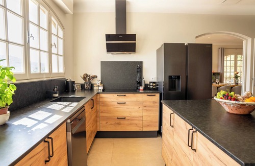 The kitchen is fully equipped with stove, large fridge/freezer, dishwasher, oven, microwave, Nespresso machine, etc.