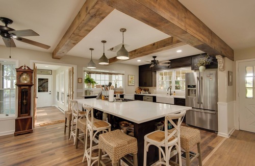 Escape to the picturesque countryside getaway of Villisca, IA, with this 4-bedroom, 1.5-bath vacation rental. Immerse yourself in the tranquility of the surrounding area while enjoying modern farmhouse decor and the peaceful ambiance of the enclosed porch. Relax by the fire pit with your favorite beverage from the coffee bar. With top attractions like the Villisca Ax Murder House and Nodaway Valley Historical Museum close by, this house offers the perfect balance of relaxation and exploration.