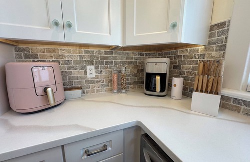 The kitchen is a dream! Complete with new appliances, dishes, glasses, pots, pans, bakeware, InstaPot, air fryer, blender, mixer, toaster and waffle maker—everything you need to whip up delicious meals. The adjoining coffee bar is a coffee enthusiast’s paradise, featuring a 12-cup drip coffee maker, Keurig with pods, pour-over setup, and French press along with sugars, creamers—start your mornings with a warm cup while watching the deer in the backyard!