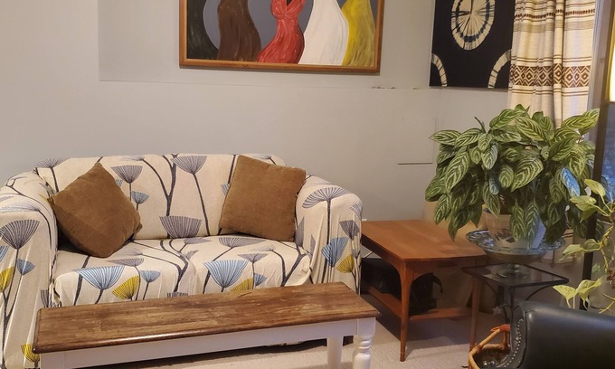 Located in beautiful Cowichan Bay, this suite has its own entrance, bedroom, living room, bathroom. No kitchen, has a small fridge, hotplate, kettle, toaster, pot and dishes. The suite is not separate, but is joined by an open stairwell. Guests are not allowed upstairs to the owner's living area. A blow up mattress (surprisingly comfortable) is available on request for sleeping in the living room. Wonderfully cool. Walkout to a relaxing patio for your morning coffee. Access to the unit involves walking around the house from the driveway, downhill on the lawn to the patio entrance below. Not suitable for those with mobility issues. Wonderfully quiet yard for relaxing and enjoying the ocean breezes and views.