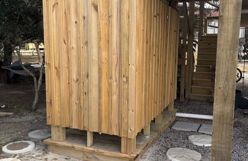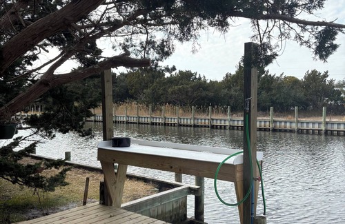 Your pet friendly home away from home in Ocracoke with 2 bedrooms right on the water. This pleasant apartment features 2 queen beds, a cozy living space, a fully equipped kitchen, large porch and a brand new dock for boat tie up. Enjoy the serene surroundings and modern amenities like heating, AC, WiFi, and a washing machine. The bathroom offers a refreshing shower and a hairdryer for your convenience. There is also an outdoor shower, fish cleaning bench, grill for cooking, picnic table and hammock for your enjoyment. You can rent this 2 bedroom as a stand alone or you can rent both Sea-esta 1 & 2 for a total of 3 bedrooms. We look forward to welcoming you to our place.