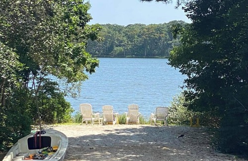 *Outdoor Living: your private back yard oasis includes a large deck with dining and lounge seating, a sandy beach area with a kids sandbox and a patio with a Solo Stove fire pit- ideal for s'mores under the stars. Three kayaks are provided for exploring the lake paddling to a nearby sand bar, or cruising down Parker's River to local town beaches and scenic estuary views filled with birds and wildlife.
