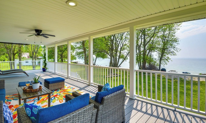 Your ultimate fall escape starts here! Book this 4-bed, 3-bath vacation rental in Three Mile Bay, where breathtaking views and modern comforts await. This beautiful home features a cozy interior, a full kitchen, a spacious deck with a heater for chilly fall mornings, and direct access to the peaceful shores of Lake Ontario. After a day on the water, gather around the crackling fire and soak in the stunning sunset views over the lake.