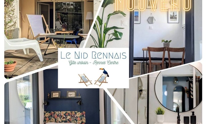 Enjoy an elegant and central accommodation in the heart of Rennes. Le Nid Rennais welcomes you to a pleasant T2 apartment with direct access to a small, quiet private garden. Just a 10-minute walk from the train station and landmarks, and 5 minutes from the market halls. Ideal for experiencing life in Rennes. The apartment features one bedroom and a sofa bed in the living room. It is fully equipped with Wi-Fi, a record player, Bluetooth speaker, washer-dryer, and a well-equipped kitchen for you. The living room, open to the outside, is perfect for feeling at home. You’ll find all the comfort needed to enjoy good moments. The living room is equipped with a TV with access to 150 channels, Bluetooth speakers, a record player, books, some board games, two seats, coffee tables, and storage. With its large bay window, you’ll have direct access to the private garden and the covered terrace facing west, perfect for relaxing and enjoying sunbathing in the afternoon and evening. The sleeping area, separated from the living room by a sliding glass door with a curtain, is designed to be comfortable and pleasant. You’ll find a French-made and even Breton bed (Delaveine bedding), a wardrobe with hanging space, 2 wall lamps, and a small folding desk. Upon request, a travel cot can be provided. The refined kitchen is particularly well-equipped and optimized. It includes a dining area and all necessary utensils and appliances to prepare good meals: a refrigerator with a freezer compartment, a combined microwave, a dishwasher, a washer-dryer, an induction cooktop, a Senseo coffee maker, a kettle, a toaster, and a set of dishes and condiments. A high chair can be provided upon request. The bathroom consists of a bathtub with a shower column, a vanity unit, a toilet, and a hairdryer. Bath towels, shampoo, and shower gel will be provided. The 25 m² garden with a terrace has everything needed to enjoy the outdoors (armchairs, sun loungers, coffee table, parasol). A covered terrace of 5 m² offers a second space for dining.