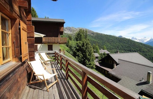 - Outside : chalet in Chandolin, for 4-6 persons, balcony, terrace, lawn with garden furnitureInside :