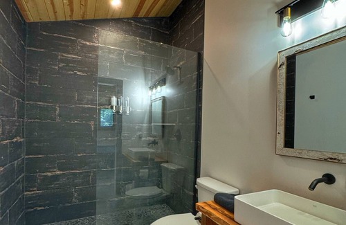 Modern Amenities: Enjoy high-speed Wi-Fi, a Smart TV, a fully equipped kitchenette, and private hot tub, providing all the comforts of home.