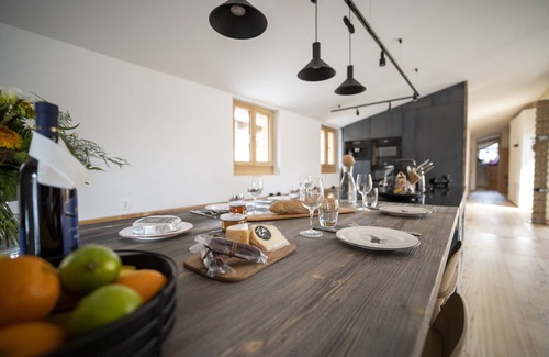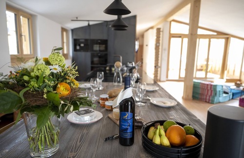 Enjoy the tranquility in the typical Engadine village of Sent, which has its own valley descent in winter directly accessible from the ski area. Surrounded by sgraffito-decorated houses, the Swiss National Park, and a ski and bathing offer that is second to none, you will be greeted by the locals with a friendly Allegra on the street.The exclusive, new, and comfortably furnished large attic apartment (160m2) impresses with light-flooded rooms. The use of new and old wood creates an exciting interplay and a lot of warmth. The lift takes you directly from the garage and ground floor to the apartment. The spacious living/dining area invites you to linger, either at the cozy dining table or on the sofa. Enjoy a glass of wine in front of the Swedish stove, which creates a cozy atmosphere, after a strenuous day, or on one of the exclusive lounge sofas, from which you can enjoy the view of the Lower Engadine Dolomites. You have a total of three televisions at your disposal, an Xbox, and a Sonos sound system. The apartment is located on the fourth floor with a sunny balcony, where you can easily have a barbecue evening or an aperitif, or simply let the day end comfortably.The shopping opportunities are within a 5-minute walk. The (ski) bus stop is located just 130m from the house (Sent, Sala). In a 15-minute drive, you can comfortably reach the valley station of the mountain lifts as well as the Scuol-Tarasp train station. The use of the ski bus is included in the winter ski ticket. The valley run to Sent, called the dream slope, lives up to its name and ends just above the village. The public underground parking garage is a one-minute walk from the apartment - ideal if you arrive with multiple cars.In summer and winter, the surroundings invite you to take small and large walks in the unique natural and cultural landscape of the Lower Engadine, which begins directly outside the front door.The guest card of the Engadin Scuol holiday region is included in every booking for all guests.With this, you can use for free:- the Rhaetian Railway from Scuol-Tarasp - Zernez in 2nd class- all PostAuto routes (except S-charl) in the Lower Engadine region- daily mountain and valley ride with the Scuol cable car or the Ftan cable car in the summerIn addition, you benefit from exclusive offers from our partners, including reduced admission to Engadin Bad Scuol, discounted Veina tickets, and numerous special offers in restaurants, sports clubs, museums, shops, and local products.Our concierge service is available to you throughout your entire stay, we will recommend the best excursions, book your ski instructor, or a spot in the Roman-Irish Bath.