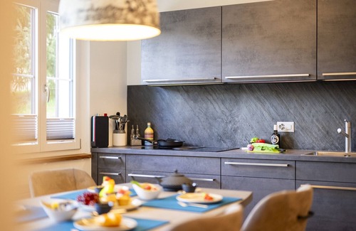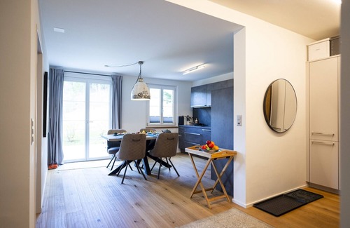 Hello and welcome to Casa Valambrun 1001 - Welcome to the charming 2½-room apartment with terrace in Vulpera.Holidays in Vulpera mean pure relaxation with wonderful, fresh mountain air in a quiet area of Scuol. In Vulpera there is a well-maintained golf course and a beautiful small park for walking. Nearby are the Gurlaina ice rink, tennis courts, and right across from the house is a magnificent Art Nouveau outdoor swimming pool. Scuol itself is a typical Engadine village, with sgraffito-decorated houses, fountains with drinking water from the many healing springs in the area, and a magnificent mineral water bath. The area invites you to diverse hikes, bike routes, and rafting and kayak tours. The beautiful Tarasp Castle can be conveniently reached by a short hike. The Swiss National Park is in the immediate vicinity.The tastefully and high-quality, completely renovated apartment is approximately 72 m2 and is located on the ground floor. The large living room is connected to an open-plan kitchen and offers plenty of space to enjoy your vacation together. In the living room there is also a visually concealed high-quality foldaway bed that can be easily folded out.The bedroom is furnished with a double bed and a wardrobe.Apartment equipment:• Free WiFi• 1 double bed in the bedroom (180 x 200 cm)• 1 double bed in the living room: high-quality foldaway bed (160 x 200 cm)• The kitchen is equipped with a dishwasher, induction cooktop, oven, Nespresso coffee machine, kettle, toaster, juicer, fondue set & raclette set, and many other practical kitchen helpers• 1 bathroom with shower and hair dryer• A shared laundry room with washing machine and tumble dryer (for a fee)• Separate shared ski and bike roomThe surroundings are perfect for small and large walks in the unique natural and cultural landscape of the Lower Engadine. The short hike to Lai Nair and Avrona is popular, reachable from Casa Valambrun in about an hour. The valley station of the mountain railways can be reached by bus in just 5 minutes. All public transport is free in summer and winter. The Martina-Scuol cross-country ski trail can be reached in 7 minutes by car. The ice rink and Gurlaina football field are a 10-minute walk away. Shopping opportunities are located in nearby Scuol, 5 minutes by car/PostAuto15 minutes by bike/on foot. The impressive Tarasp Castle can be reached by car and PostAuto in about 6 minutes. The beautiful and historic outdoor pool in Vulpera is located right across from the apartment. Additionally, you will find the Hotel Villa Post and the golf restaurant in the neighborhood, where external guests are also welcome for lunchdinner.The guest card for the Engadin Scuol holiday region is included in every booking for all guests.This allows you to use free of charge:- The Rhaetian Railway from Scuol-Tarasp - Zernez in 2nd class- All PostAuto routes (except S-charl) in the Lower Engadine region- In summer, daily mountain and valley rides with the Scuol cable carthe Ftan cable carAdditionally, you benefit from exclusive offers from our partners, including reduced entry to Engadin Bad Scuol, discounted Veina tickets, and numerous special offers in restaurants, sports clubs, museums, shops, and for local products.Our concierge service is available to you throughout your stay we will reveal the best excursions, book your ski instructor,a spot in the Roman-Irish Bath.