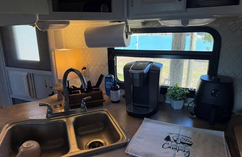 Kaysons island at LAOK RANCH on the water is waiting for you at this enchanting 1-bedroom camper. Nestled in nature, this property offers a smll living room with 1 bunk bed. Guests can enjoy the peaceful surroundings and cozy amenities like heating and AC. Whether you're looking for a weekend getaway or a longer stay, this awesome retreat is the perfect escape. We look forward to hosting you at our place. Horse Hotel- Horse Trails- Hiking - 4 stocked ponds -memories to be made