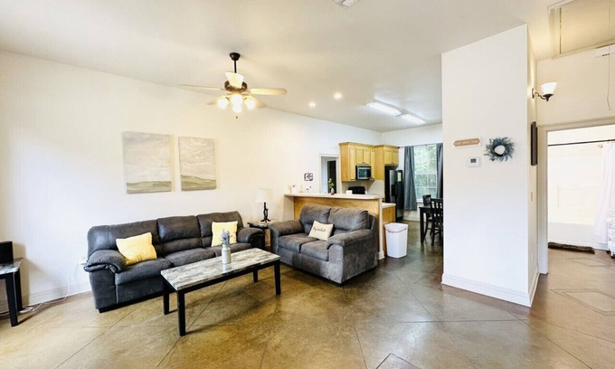 Great place to unwind and relax. Spacious and private 2 bed room, 1 bath apartment. quiet country setting with New Orleans style Décor. 10 ft ceilings and open floor plan.