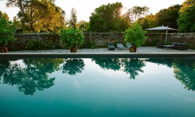Escape to Château Chevreuil, a private estate with large pool, accommodating up to 16 guests (20 max, extra beds available)