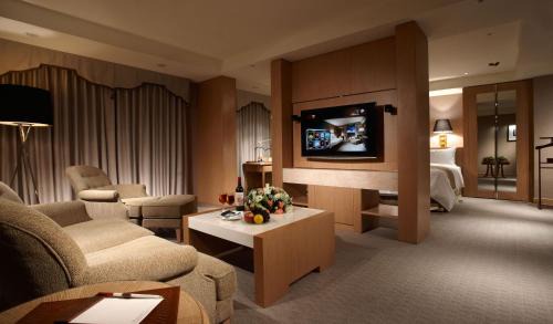 Sinjhuang Chateau de Chine Hotel is located next to Dahan Bridge in Xinzhuang, a 20-mintue drive from downtown Taipei. It offers 2 dining options, a fitness center and free Wi-Fi. The property is Muslim friendly and has restaurant for Muslim. Air-conditioned guestrooms are fitted with a mini-bar, coffee/tea making facilities and a flat-screen TV with cable channels. The private bathroom comes with toiletries and a bathtub. Taoyuan International Airport is a 40-minute drive from Sinjhuang Chateau de Chine Hotel. The hotel is adjacent to Zhongshan Highway Wugu Interchange. Both MRT Touqianzhuang Station and MRT Xinzhuang Station can be reached in 4 minutes' walk from the property. Guests can unwind in the sauna rooms or work out at the fitness center. There is also a self-service launderette. The business center provides fax and photocopying services. Joie Cafe serves fusion dishes and all-day dining is available. Cantonese Dim Sum and Chinese cuisine can be enjoyed at the Paradise Cantonese Restaurant.