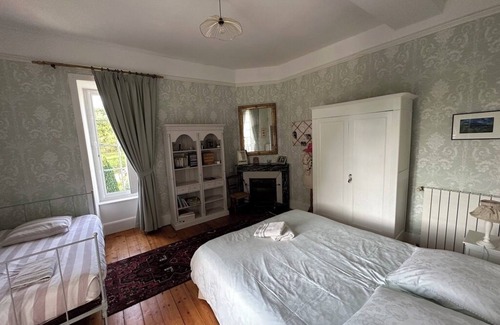 At 2 minutes from Limoges, you will find in the castle, the space, the greenery and the calm of a large family property surrounded by remarkable trees planted in a vast park drawn by a famous landscape architect of the 19th century. We offer 7 large rooms furnished period with 6 bathrooms. You will have available 2 large living rooms, 1 dining room, 1 library and a large private pool (13x6)