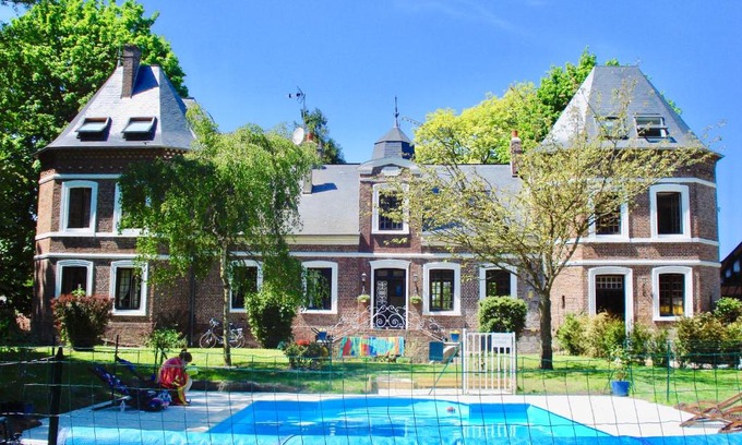 Chateau de la Vallee, Normandy offers accommodations in Grandcourt, 30 miles from Train Station of Dieppe and 30 miles from Dieppe Casino. This property offers access to a patio, table tennis, free private parking, and free Wifi. Outdoor seating is also available at the villa. Providing a terrace and pool views, the spacious villa includes 11 bedrooms, 5 living rooms, flat-screen TV, an equipped kitchen, and 9 bathrooms with a bidet and a bath. Towels and bed linen are provided in the villa. There's also a seating area and a fireplace. For guests with children, Chateau de la Vallee, Normandy provides outdoor play equipment. Guests can swim in the outdoor swimming pool, go fishing or hiking, relax in the garden, and use the barbecue facilities. Church of Notre-Dame de Bonsecours is 28 miles from the accommodation, while Dieppe Port is 29 miles away. Beauvais–Tillé Airport is 42 miles from the property.