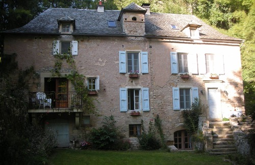 Enchanting mill-house on private park with river and waterfall. Four bedrooms with four full bathrooms (three master bedrooms)... and tons of history. The house has living room, family room, spacious kitchen and dining area with veranda. The fourth bedroom is situated on the lower floor with its own bathroom and direct access to the garden. The park-like grounds have gardens, an arbor, lawns, trees as well as a delightful riverside entertainment area with a waterfall -A River Runs Through It-. Chateau De Moulin is situated within an easy walk to the village of Bozouls which bustles with bakeries, butcher shops, restaurants -including a 1 star Michelin restaurant and a stationary shop with international newspapers . The village has a weekly farmers market as well as a daily fish market -get your Caviar and Lobster fresh every day. The village has a medieval church St. Fauste located above the property.