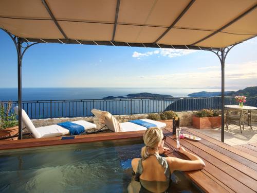 - Bungalow- wooden chalet, comfort, 180° sea view, infinity pool, garden, 2 pers